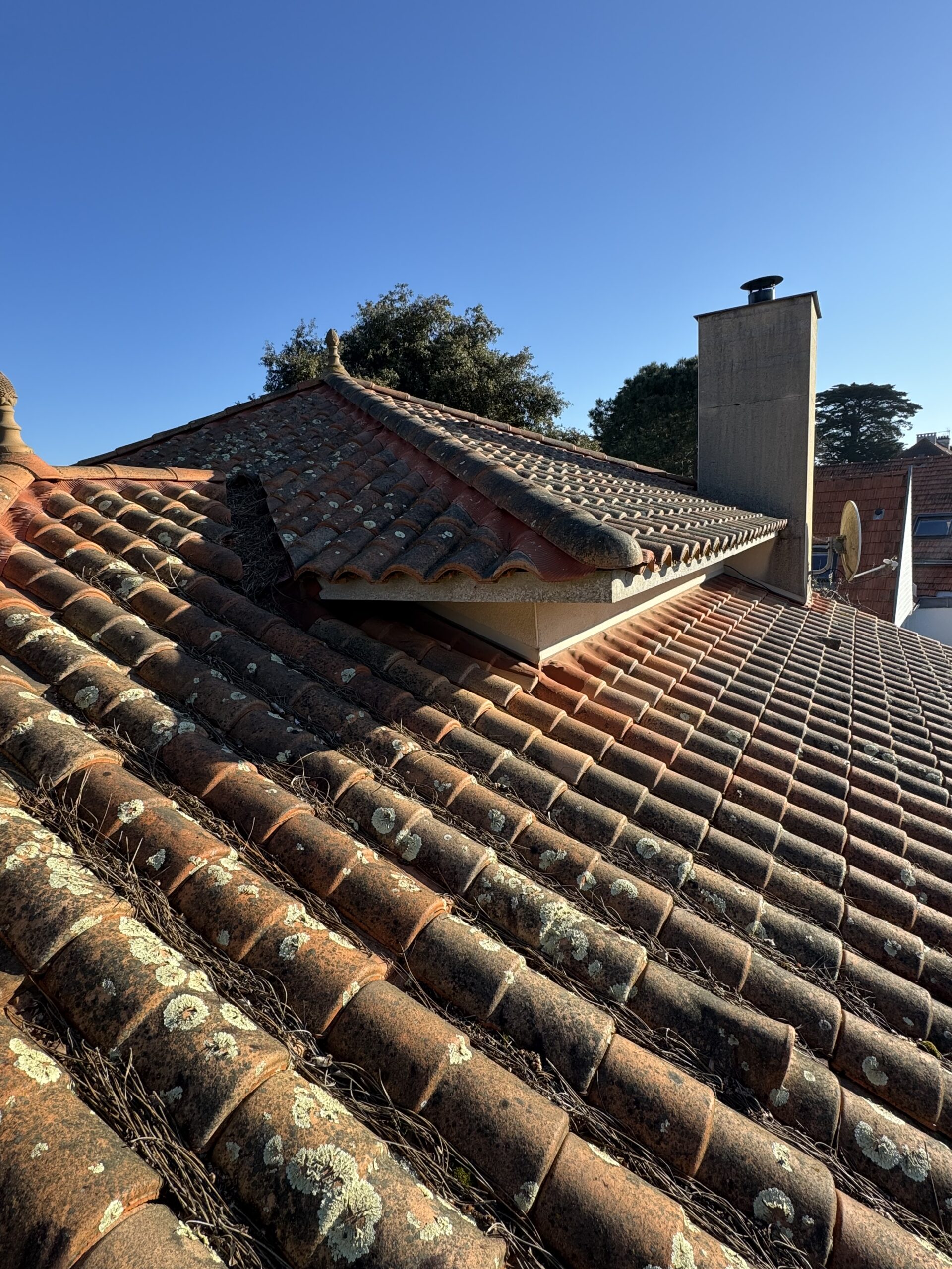 À La Baule, les toitures sont particulièrement exposées à l’humidité, aux embruns marins et au développement rapide des mousses et lichens.
